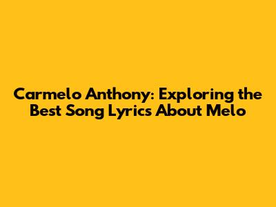 Carmelo Anthony: Exploring The Best Song Lyrics About Melo