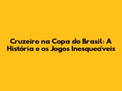 Jogos Marcantes do Cruzeiro na Copa do Brasil: Emoção Pura!