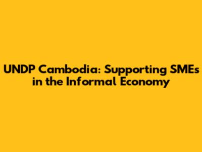UNDP Cambodia: Supporting SMEs In The Informal Economy